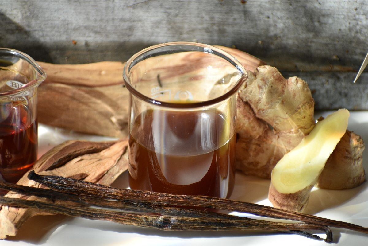 Ginger and Sandalwood are predominant. Florals, butter and amber are there for fullness and depth but do not stand out. Saffron is highly variable for people - for some it is strong, while others can't detect it. The vanilla and yerba mate blend in and you must be patient to notice them. This perfume is a practice in noticing, in subtlety, in fluidity and change, in patience. A meditation if you will.
